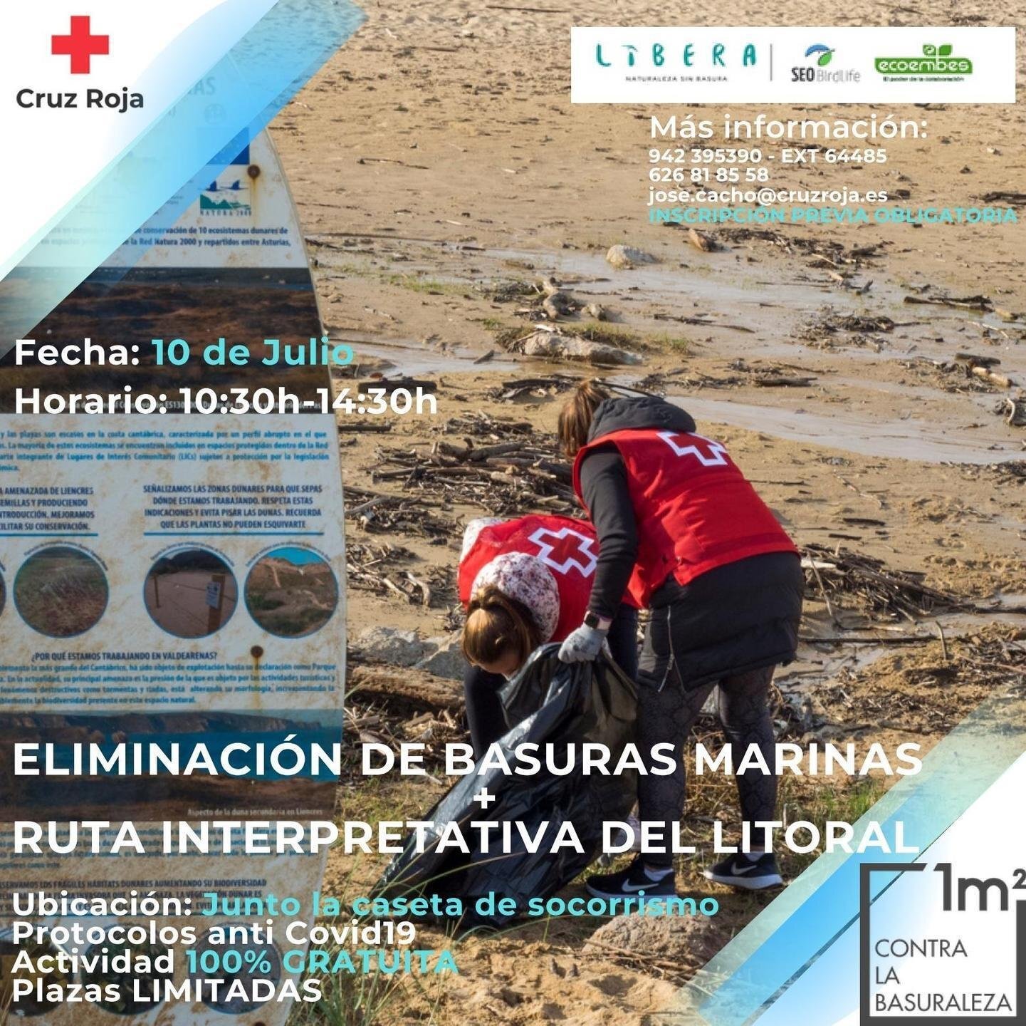 Cruz Roja Cantabria, a través del proyecto LIBERA, celebrará el sábado 10 una nueva jornada de sensibilización ambiental en la Playa de Valdearenas, en Piélagos, que incluirá la eliminación de basuras marinas y una ruta interpretativa por el litoral.