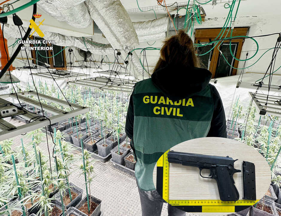 De este modo se obtuvieron indicios que indicaban que en el interior del domicilio se ocultaba una plantación de marihuana y en diciembre, los agentes registraron la vivienda, localizando en su interior una sofisticada plantación de tipo indoor con todo lo necesario para el crecimiento rápido de las plantas de marihuana. Se intervinieron 333 plantas y también se hallaron seis kilos de hoja de marihuana picada y congelada, los utensilios necesarios para llevar a cabo la plantación y una pistola replica del calibre 45.