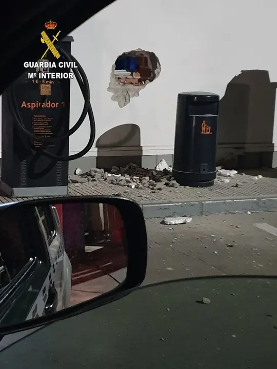 Junto al butrón se encontraba estacionado un vehículo robado, presuntamente utilizado por los delincuentes para trasladarse hasta la gasolinera.