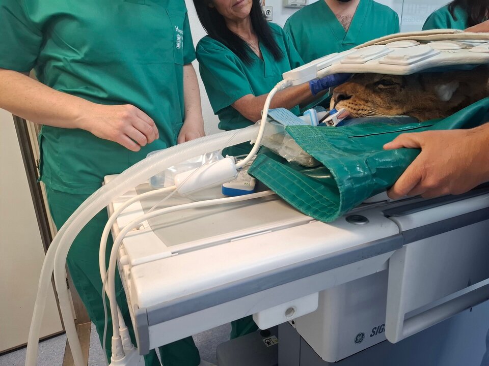 Ese hallazgo resultó "clave" y, tras consultar con el equipo de la Universidad de León, se decidió trasladar a los animales a las dependencias del Hospital Veterinario para realizar pruebas avanzadas como TAC y resonancia magnética, que permitieron confirmar que los leones sufrían una compresión en el cerebelo y la médula espinal provocada por malformaciones óseas derivadas de la carencia vitamínica.