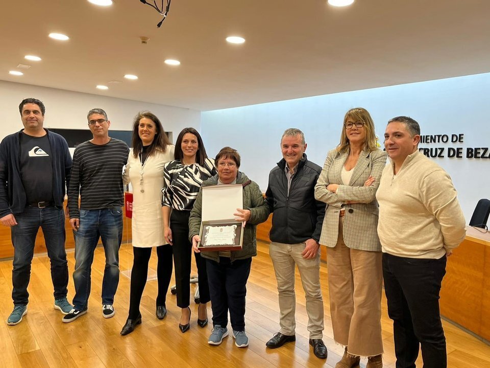 Pérez ha hecho entrega de la placa conmemorativa y un centro de flores a la galardonada, quien ha estado arropada por familiares y miembros del Club Deportivo Bezana.