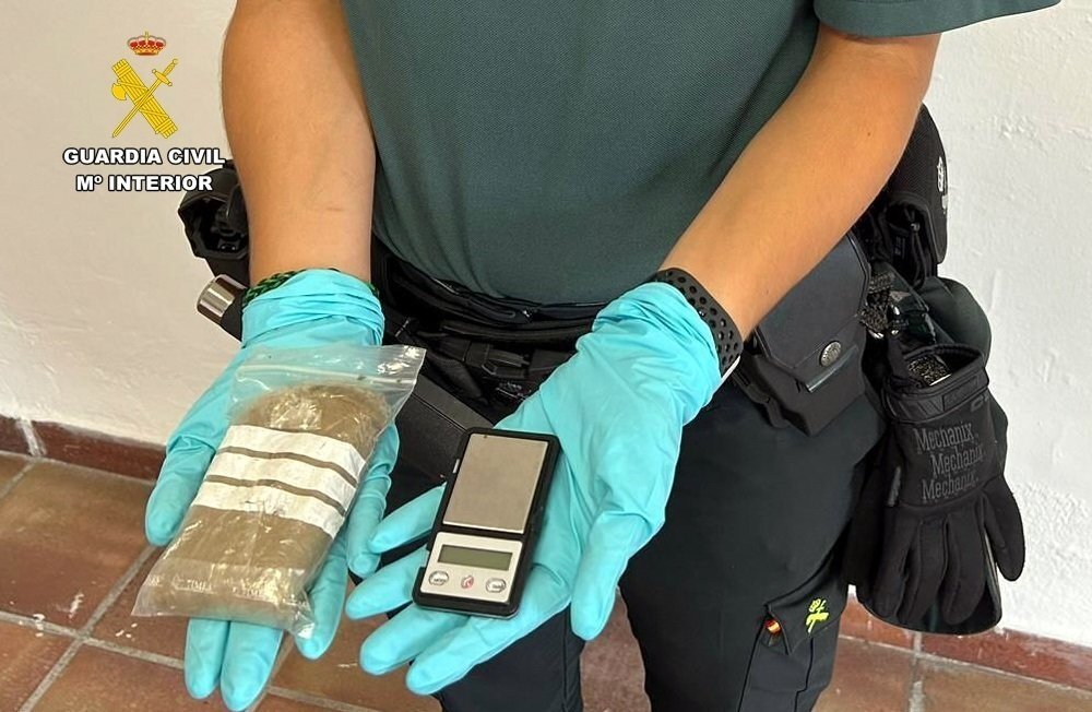 Finalmente, le encontraron una tableta de hachís, de unos 100 gramos de peso, tres dosis de la misma sustancia, así como una balanza de precisión.
