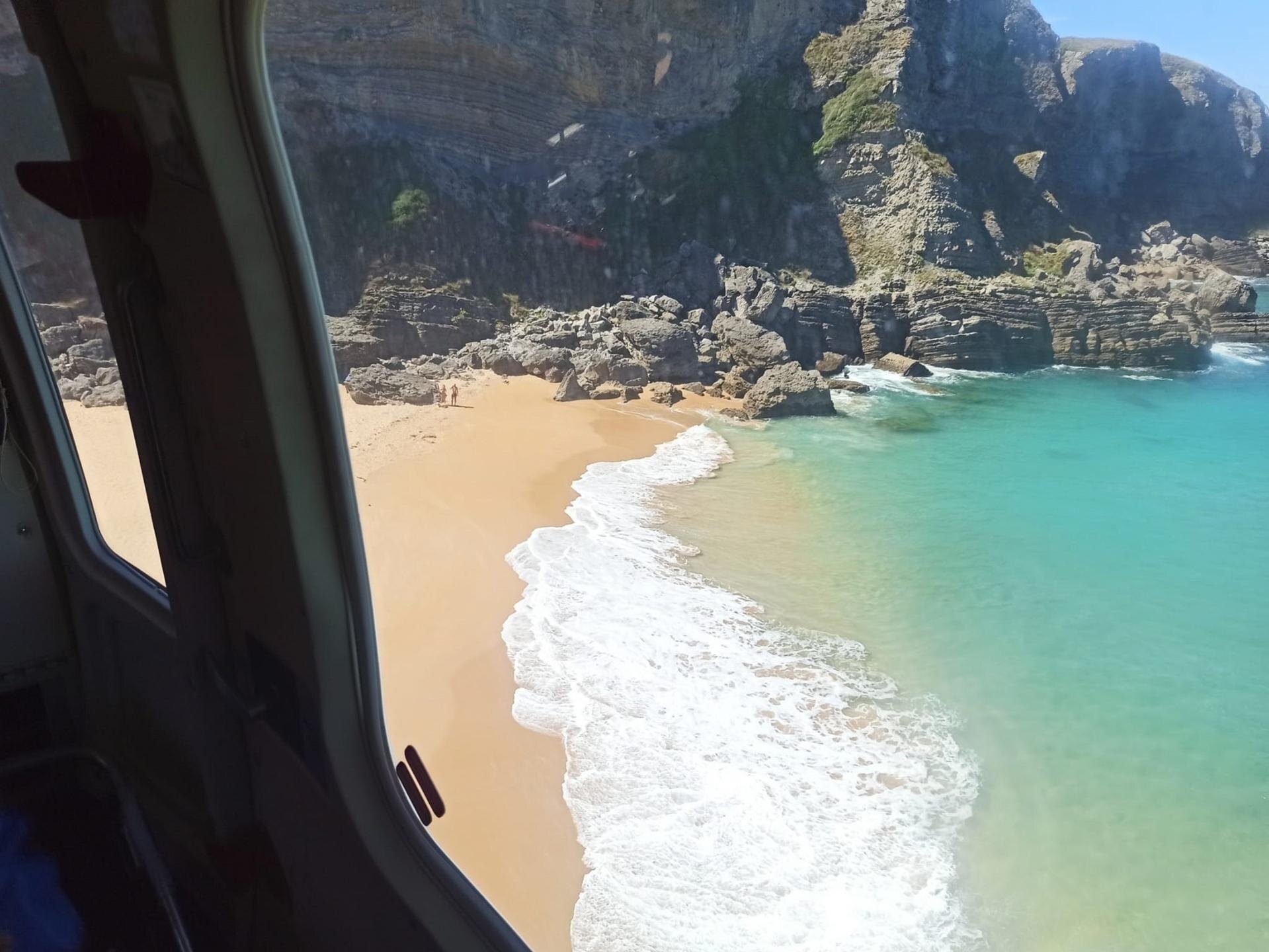 El equipo del helicóptero medicalizado del Gobierno de Cantabria ha evacuado este lunes de la playa de Antuerta, en Ajo, a una mujer de 59 años con una lesión de tobillo que le impedía moverse.