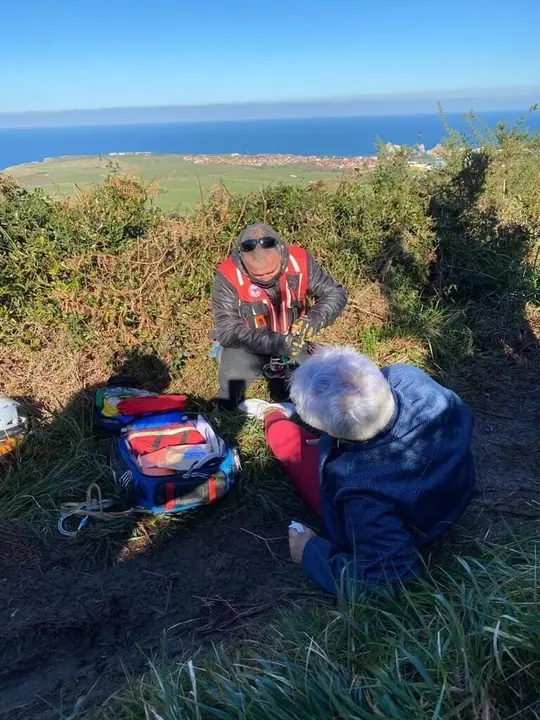 Para atender a la herida, de nacionalidad cubana y residente en Bilbao, el rescatador ha tenido que actuar con grúa y se le han practicado los primeros auxilios en el terreno con la inmovilización.