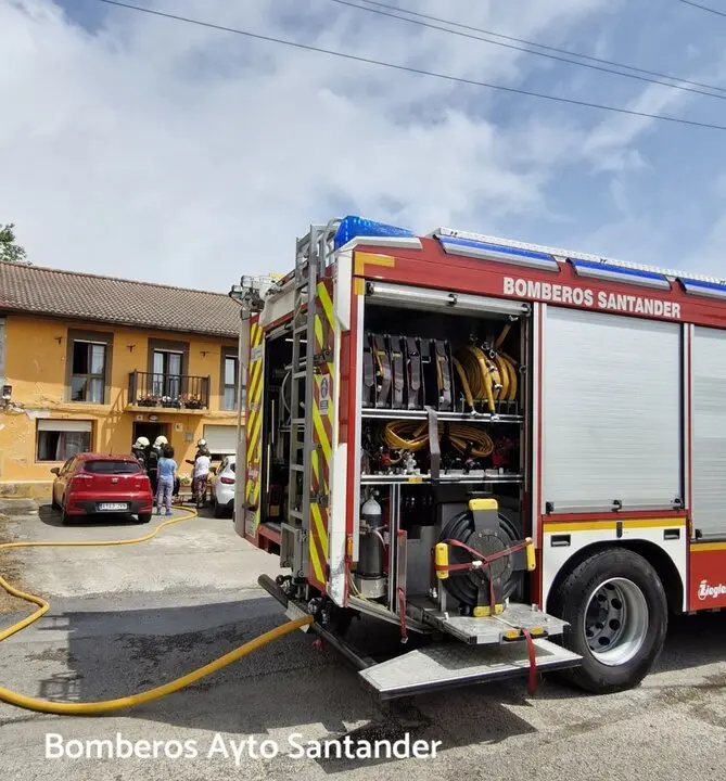 Bomberos de Santander han sofocado este mediodía un incendio en una vivienda de Prezanes, en Santa Cruz de Bezana, que ha afectado a la cocina.