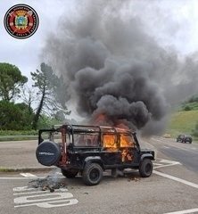 Se incendia un vehículo en el cruce a la playa de Valdearenas en Piélagos