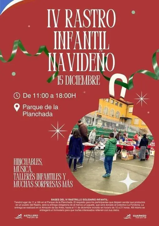 El Parque de La Planchada de Astillero acogerá el próximo domingo 15 de diciembre la cuarta edición del Rastro Infantil Navideño con actividades para toda la familia y una iniciativa solidaria a favor del Colectivo La Fondona.