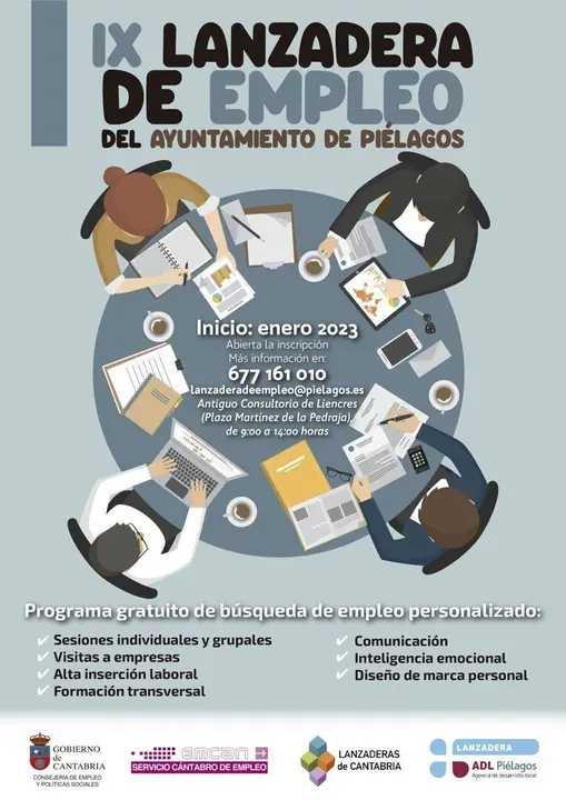 Las personas interesadas pueden realizar sus inscripciones en el teléfono 677161010, en el correo electrónico lanzaderadeempleo@pielagos.es o acudiendo al antiguo Consultorio de Liencres (Plaza Martínez de la Pedraja), de lunes a viernes de 9.00 a 14.00 horas.