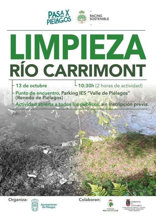 El Ayuntamiento de Piélagos, en colaboración con la Fundación Real Racing Club y el Gobierno de Cantabria, celebra este domingo, 13 de octubre, una jornada de voluntariado y sensibilización ambiental en el río Carrimont, en la localidad de Renedo.