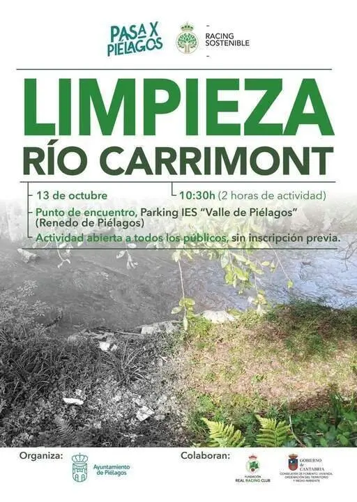 El Ayuntamiento de Piélagos, en colaboración con la Fundación Real Racing Club y el Gobierno de Cantabria, organizará el próximo domingo, 13 de octubre, una jornada de voluntariado y sensibilización ambiental en el río Carrimont, en la localidad de Renedo.