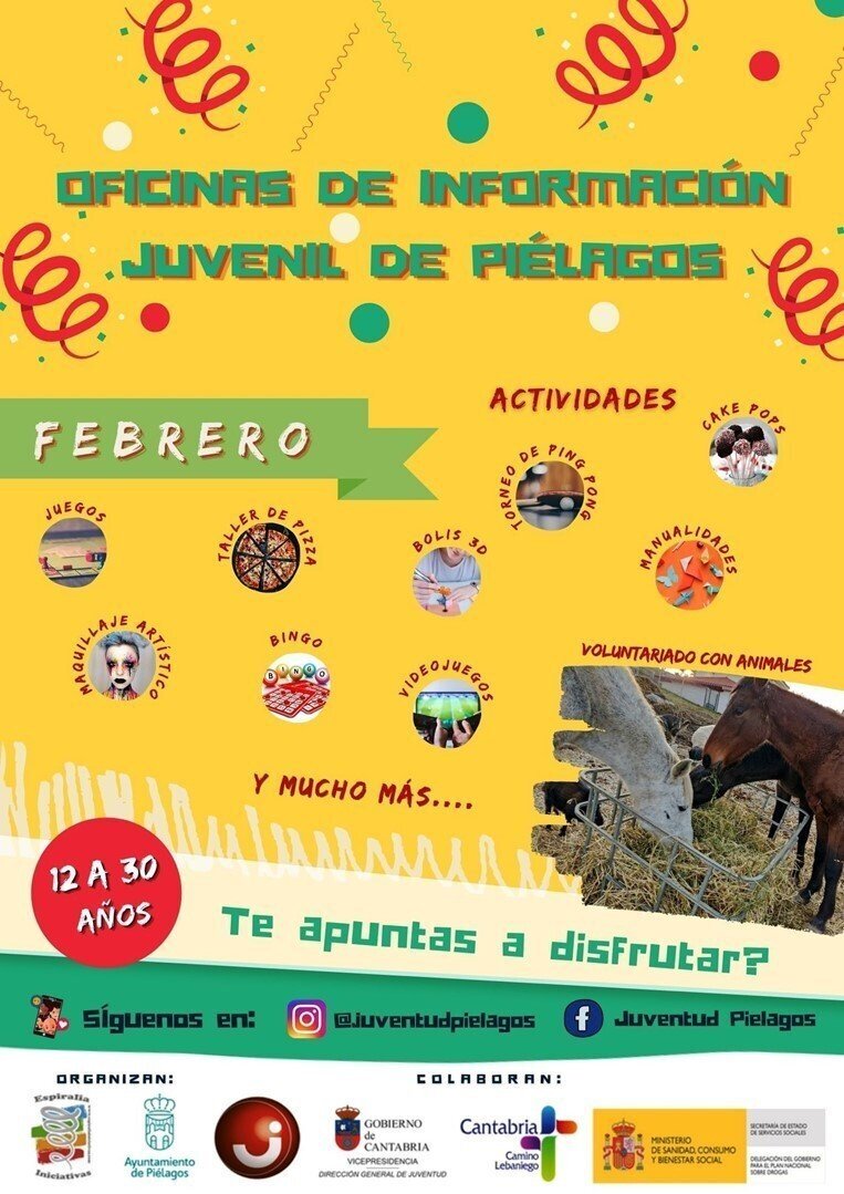 Por su parte, el sábado 5 de febrero el taller de pizzas será de 17.00 a 21.00 en la OIJ de Liencres, el sábado día 12 la experiencia de voluntariado con animales en el Refugio la Manada de mañana y el sábado día 19 el tallar de maquillaje artístico de 17.00 a 21.00 en la OIJ de Renedo.