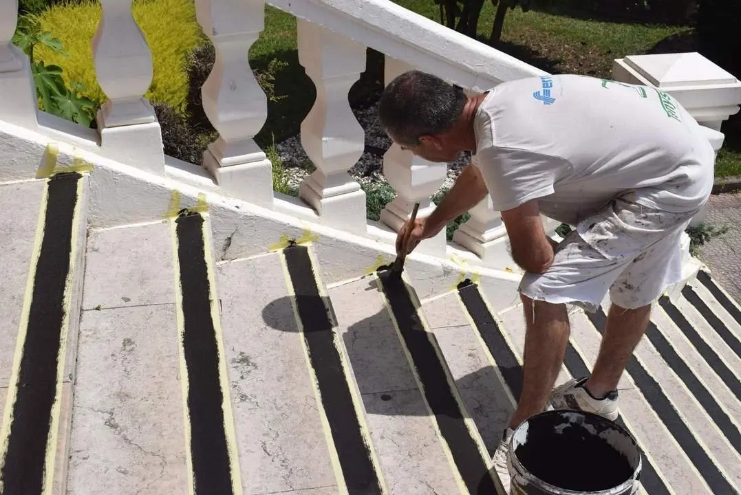 De este modo, el Ayuntamiento ha señalizado los escalones exteriores de acceso al edificio Consistorial, en Renedo, así como los interiores, en todos los casos con bandas de 5 centímetros que contrastan en color y textura con el pavimento, a 3 centímetros del borde.