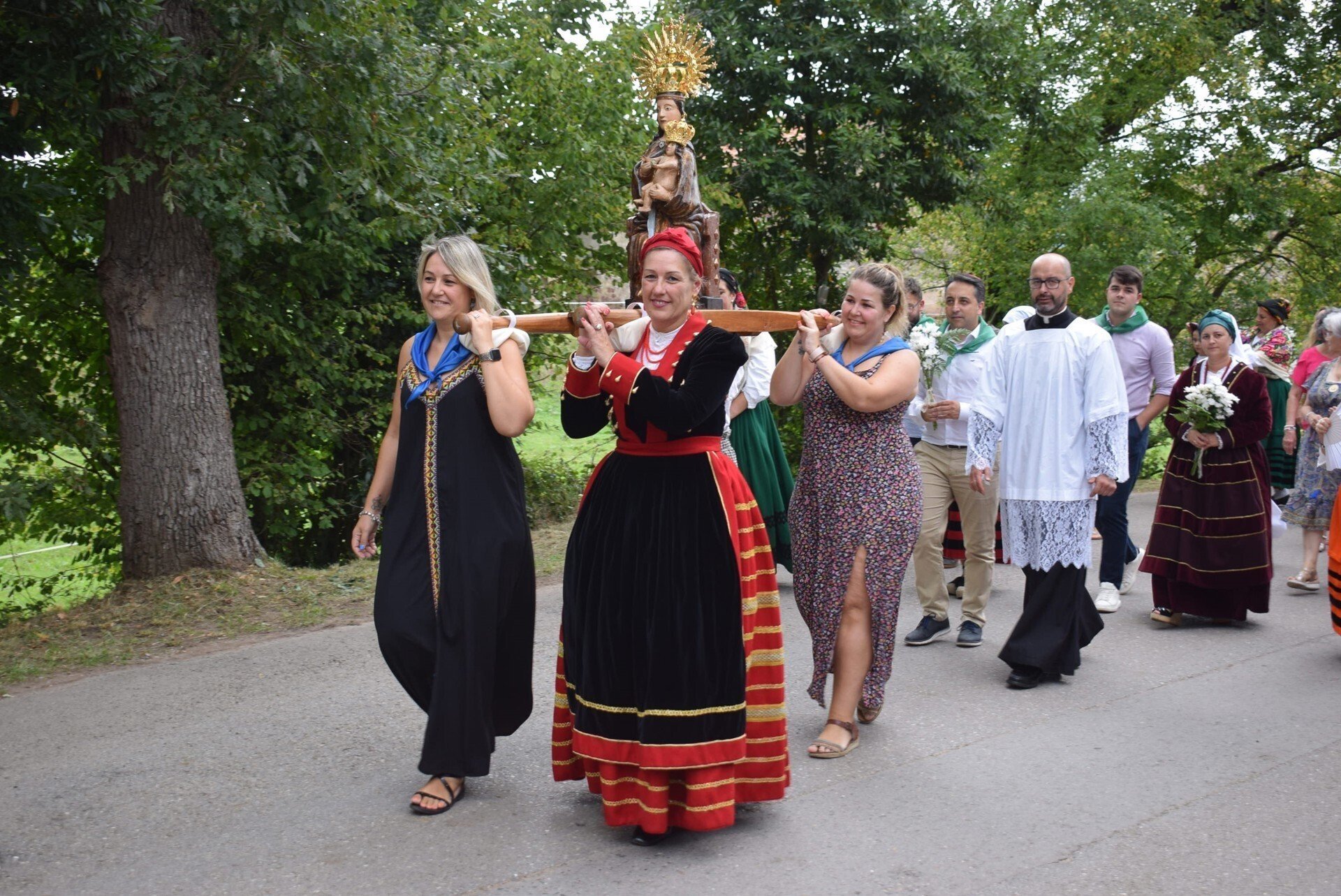 El alcalde, Carlos Caramés, y la alcaldesa pedánea de Vioño, Inmaculada Araunabeña, que han encabezado la procesión, han portado a la Virgen de Valencia en alguno de los diferentes tramos del recorrido y han abierto la ofrenda floral, que ha estado amenizada por la Escuela municipal de música 4 Cuartos.