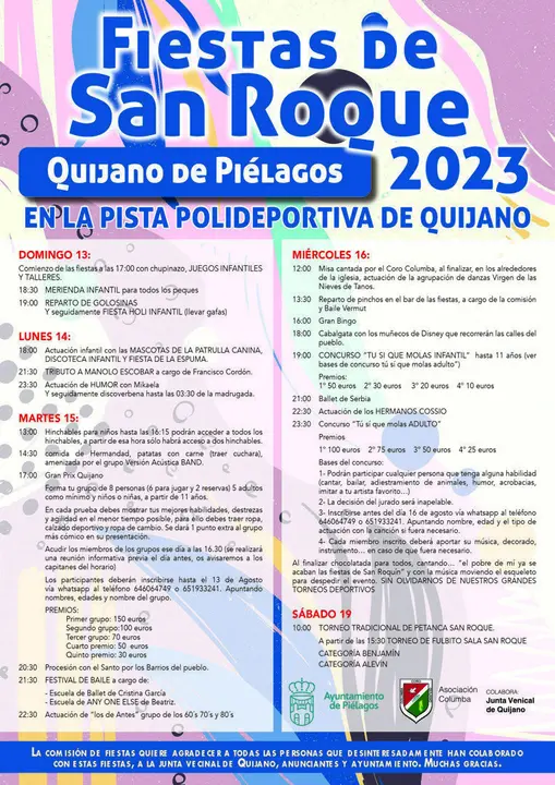 La localidad de Quijano de Piélagos celebrará del 13 a 19 de agosto las fiestas de San Roque con un programa de actividades que se desarrollará en la pista polideportiva.