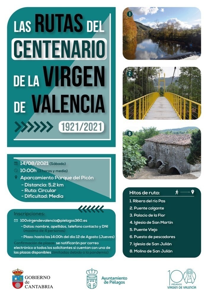 Cada una de las salidas del programa contará con plazas limitadas, para las que será necesaria la inscripción previa, a través del correo electrónico 100virgendevalencia@pielagos360.es.