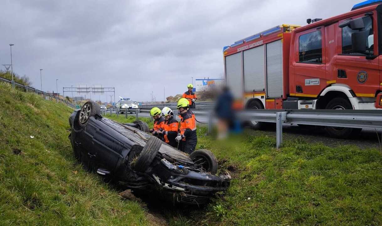 Una conductora ha resultado herida este domingo tras sufrir un accidente de tráfico en el punto kilométrico 196,9 de la A-67, a la altura de Santa Cruz Bezana, en sentido Torrelavega, tras salirse de la vía y volcar el turismo que conducía.