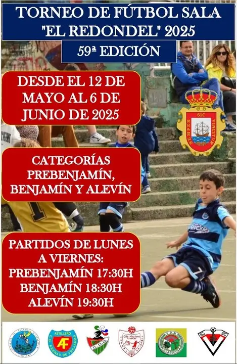 El Torneo de Fútbol Sala 'El Redondel', una de las citas deportivas "más emblemáticas" de Astillero, celebrará este mes su 59ª edición con la participación de 18 equipos en categorías base, que comienza hoy hasta el 6 de junio.