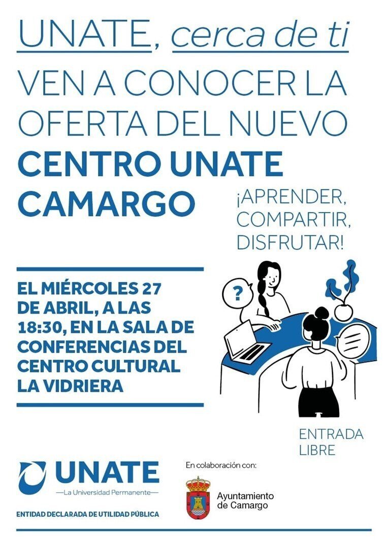 Para dar a conocer la iniciativa y el programa de actividades se ha organizado la presentación abierta a todas las personas interesadas, que tendrá lugar este miércoles 27 de abril, y en el que participarán la alcaldesa de Camargo y la concejala de Educación, Esther Bolado y María Teresa del Pilar Fernández, así como el vicepresidente y coordinador de UNATE, Francisco Gómez Nadal.