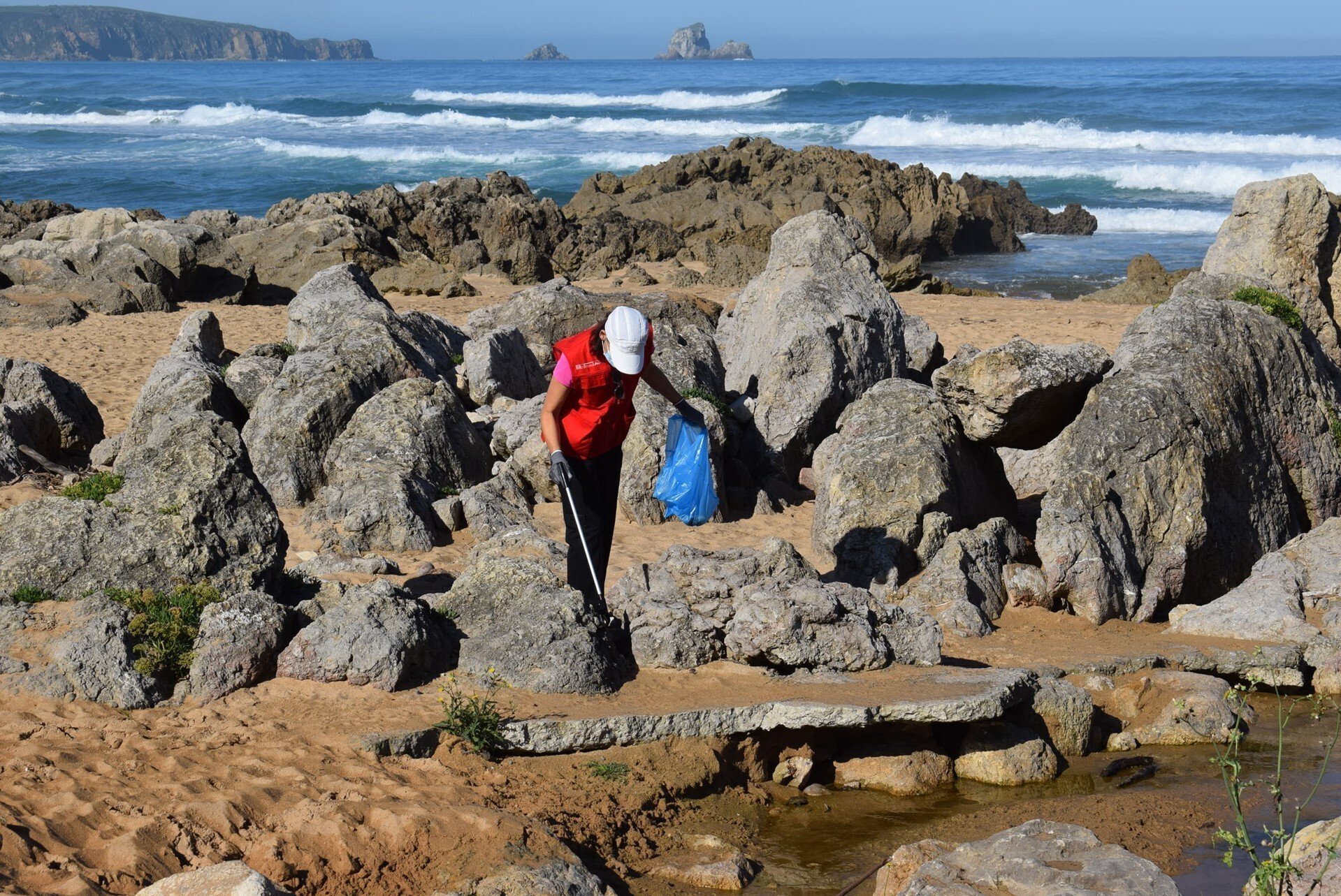Voluntarios ambientales de Cruz Roja Cantabria han recogido este jueves 62 kilos de 'basuraleza' en la playa de Valdearenas, en Piélagos.