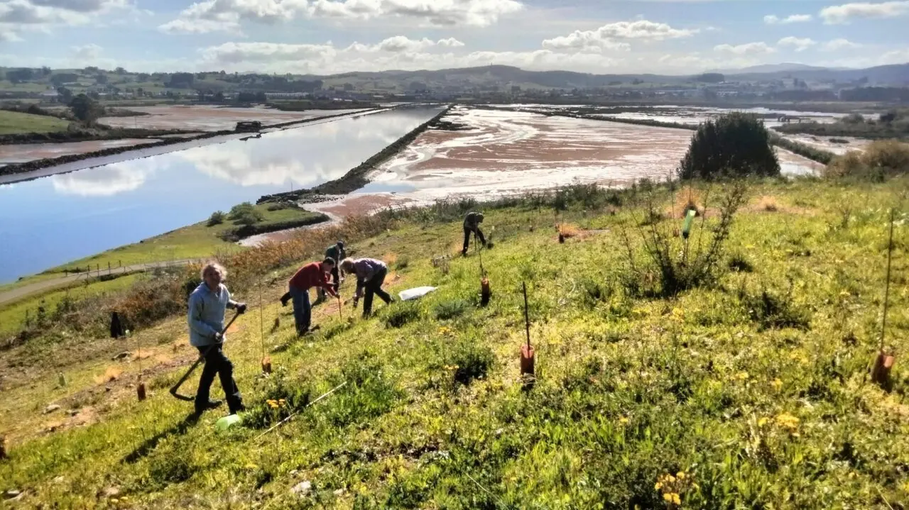 Voluntarios convocados por Ecologistas en Acción Cantabria (EAC) han plantado este domingo 150 árboles en una parcela junto al área recreativa de Los Cantos, en el municipio de Suances, incluida en el Área Natural de Especial Interés (ANEI) de la Ría de San Martín, cuya protección reivindican.
