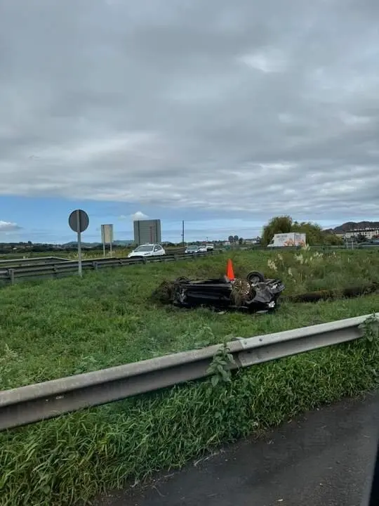 Un vehículo ha volcado esta madrugada tras salirse de la vía y superar la bionda en el punto kilométrico 2,5 de la autovía S-10, sentido Vizcaya, y su conductor ha salido del coche por su propio pie.