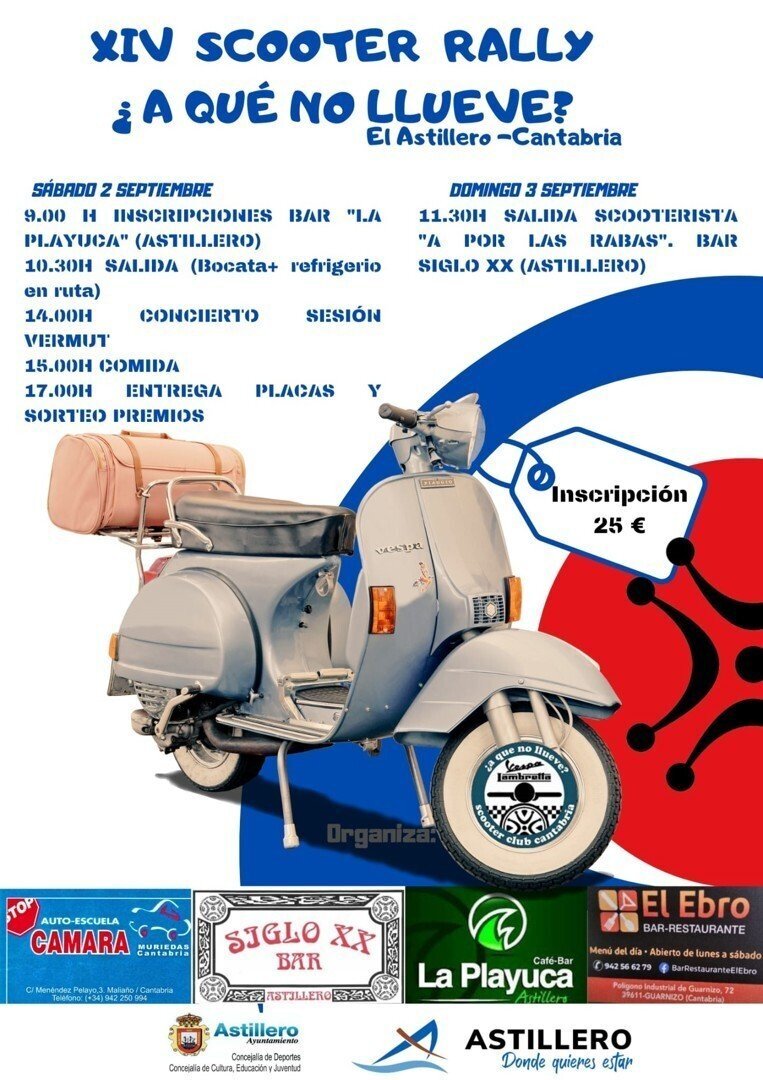Astillero acogerá los días 2 y 3 de septiembre el XIV Scooter Rally, una cita organizada por el Club de Scooter '¿A que no llueve?', en colaboración con el Ayuntamiento, que reunirá a casi un centenar de motos estilo scooter.