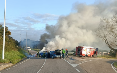 Colisionan dos vehículos la CA300 en Prezanes y uno de ellos acaba ardiendo