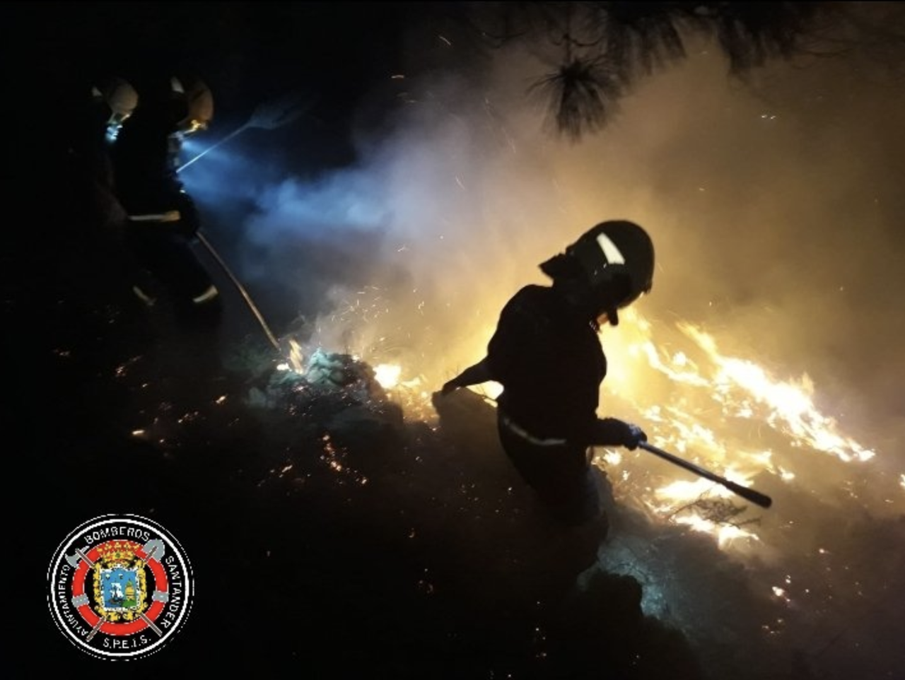 La carretera autonómica CA-412 permanece cortada al tráfico desde las 20.30 horas del pasado domingo en el kilómetro 0, en Santiago, en sentido creciente de la kilometración hacia Peña Cabarga, por el polvo y el humo de los incendios forestales que están asolando Cantabria desde el pasado jueves.