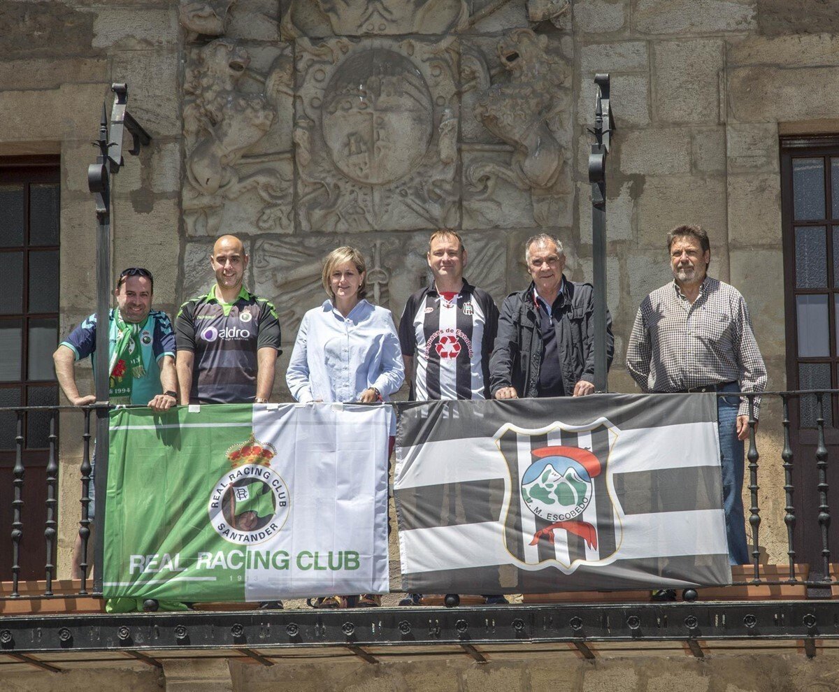El balcón principal del Ayuntamiento de Camargo luce desde hoy las banderas de la Unión Montañesa Escobedo y del Real Racing Club como muestra de apoyo del municipio a ambos clubes, que disputarán este fin de semana los partidos de ida de sus respectivas eliminatorias para ascender de categoría y poner así el broche de oro a las grandes temporadas realizadas por ambos conjuntos.