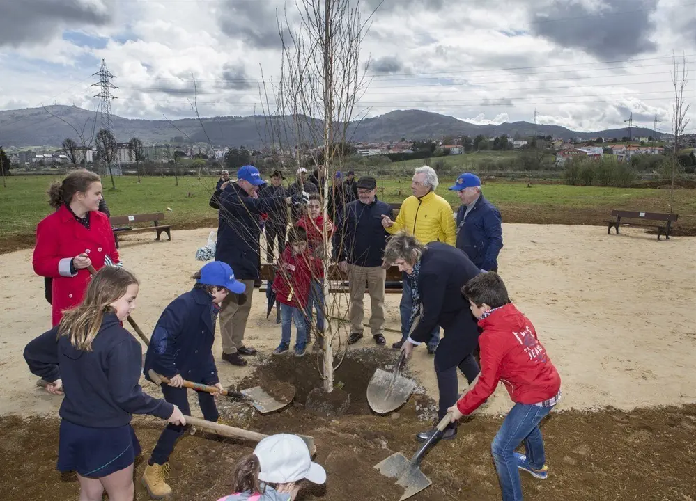 La alcaldesa, Esther Bolado, y el concejal de Servicios Municipales, Ángel Gutiérrez, han participado este sábado en la inauguración de la plantación de un centenar de árboles que el Club Rotario Valle de Camargo y el Ayuntamiento han llevado a cabo en el Parque de la Antigua Marisma de Cacho, donde se ha colocado además un monolito conmemorativo que recordará la efeméride y el motivo de la acción.