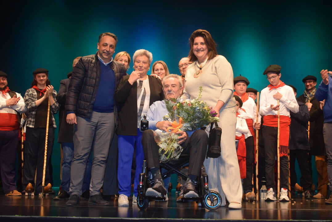 El homenajeado ha recibido este reconocimiento sobre el escenario del Teatro Vimenor que, ahora sí, ya es totalmente accesible.
