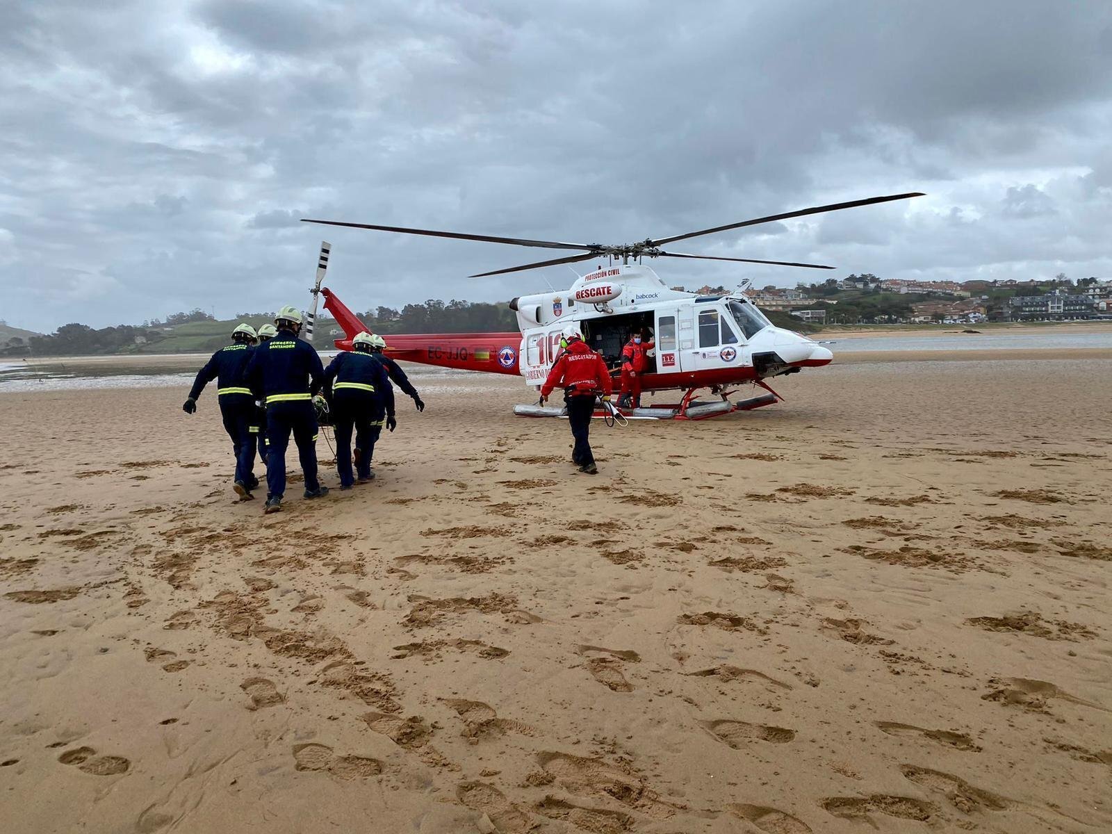 Evacuado en helicóptero un hombre de 86 años, vecino de Santander, con traumatismo en la cabeza tras caerse del caballo en el que montaba en la playa de Valdearenas.