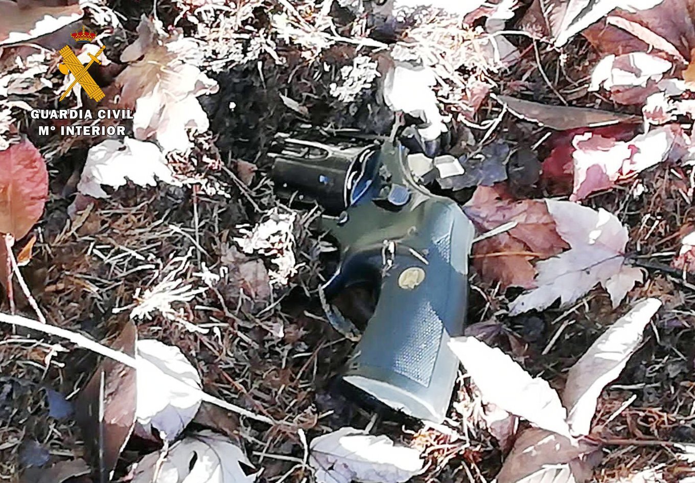 Posteriormente ha podido ser localizado un revolver en el interior de una finca. La misma se encuentra en la ruta de huída del ahora detenido, suponiendo que lo arrojó por encima de un muro existente en el lugar.