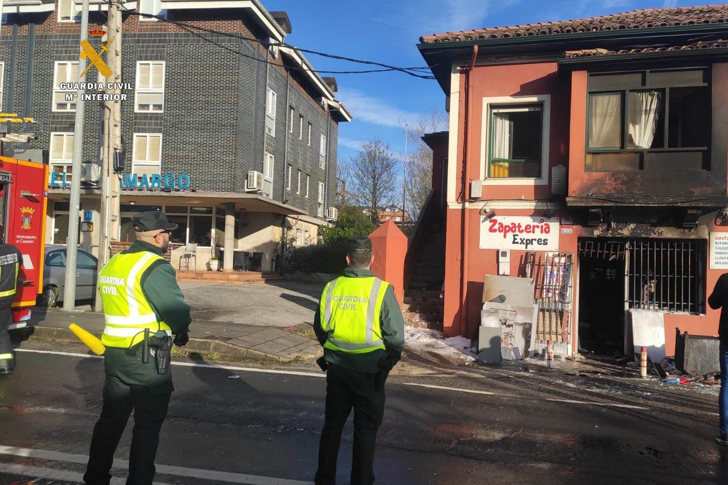 La Guardia Civil salva a dos ancianos que dormían encima de la zapatería incendiada
