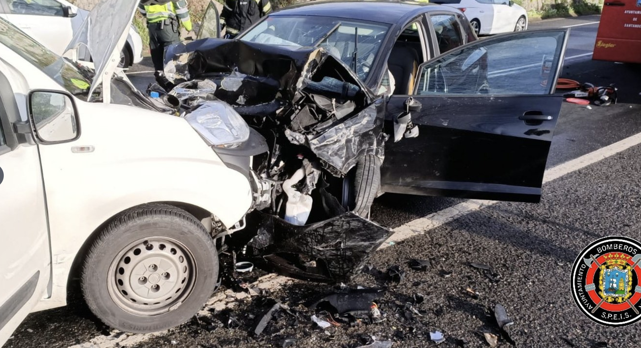 Dos vehículos han colisionado de forma frontal y un tercero se visto afectado de forma lateral, efectivos de 061 Cantabria han atendido y trasladado a los heridos hasta el Hospital Valdecilla.
