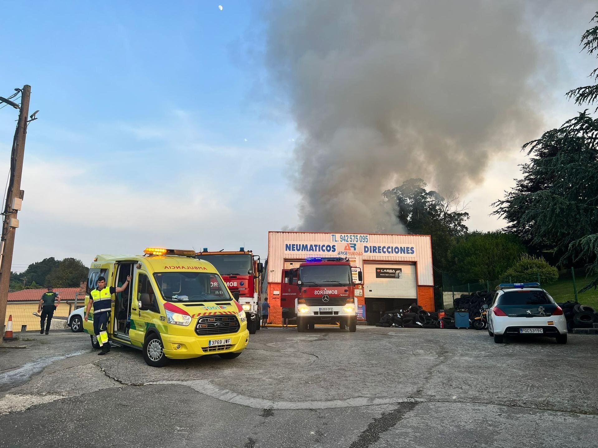 Un taller de neumáticos en Puente Arce ardía por causas que se investigan a última hora de la tarde de este martes sin que haya que lamentar daños personales.