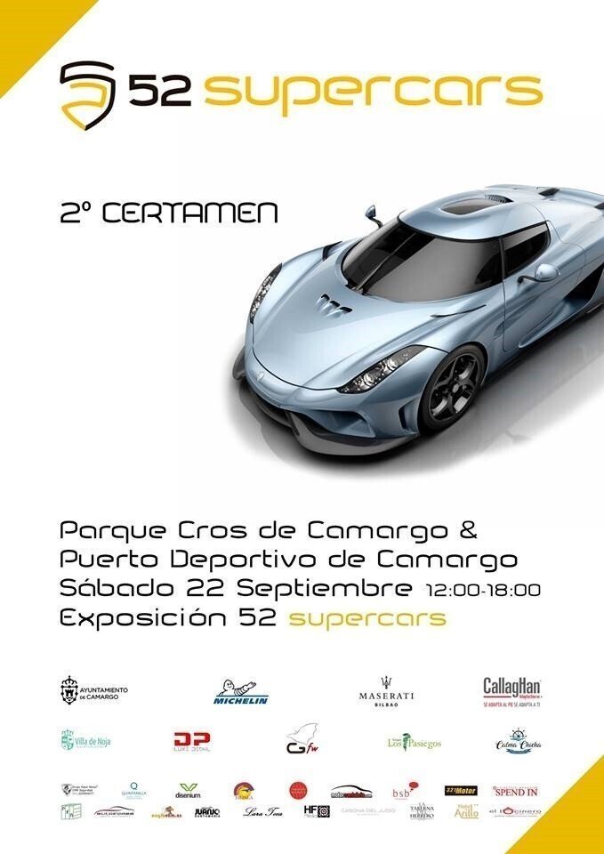 Ésta no será la única cita del sábado, ya que por otro lado el Parque de Cros también recibirá a partir de las 12.00 horas a los participantes en la segunda edición del evento automovilístico '52Supercars', que traerá hasta Camargo algunos de los coches deportivos más espectaculares del país.