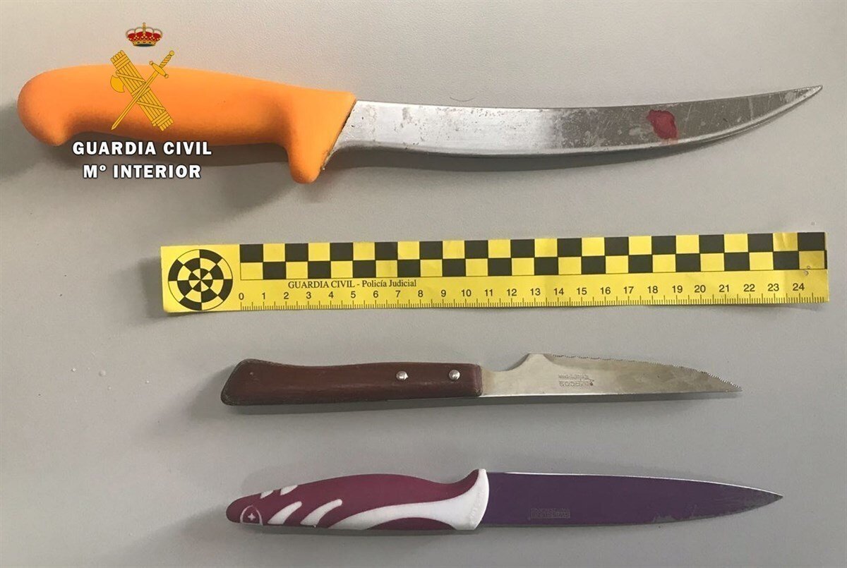 Los agentes intervinieron tres cuchillos utilizados en la pelea, dos de los cuales los llevaban los implicados antes del altercado.