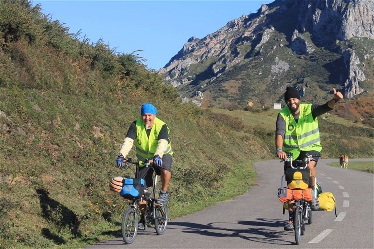 Meira, acompañado por Pedro de Armas, pretende recorrer en bicicleta plegable un total de 6.000 kilómetros, para cruzar todas las comunidades autónomas españolas, subiendo para ello las etapas de montaña de la vuelta ciclista a España.