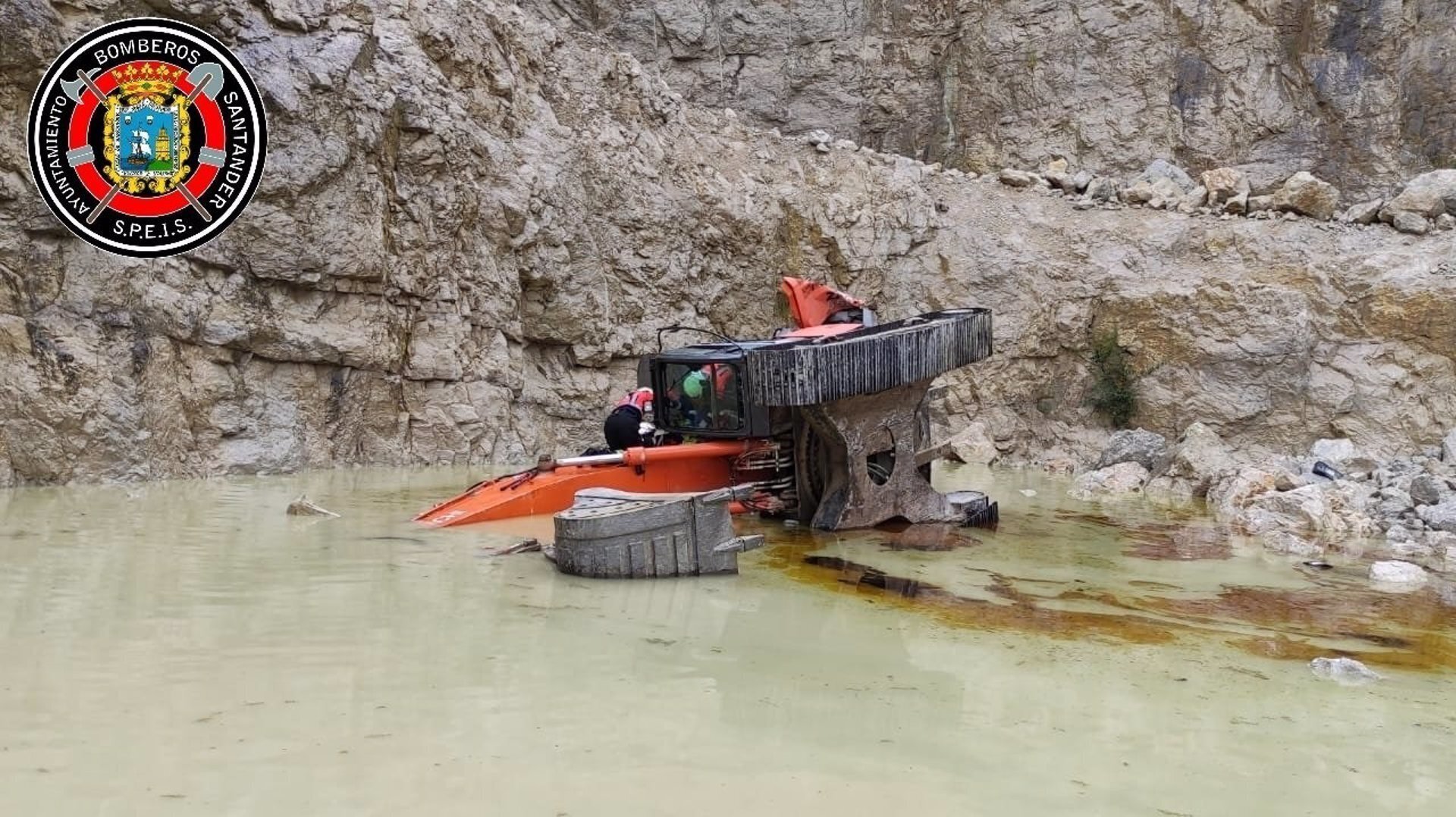 Bomberos de Santander han rescatado esta tarde a un operario de pala excavadora que quedó atrapado tras sufrir un accidente en la cantera de Puente Arce.