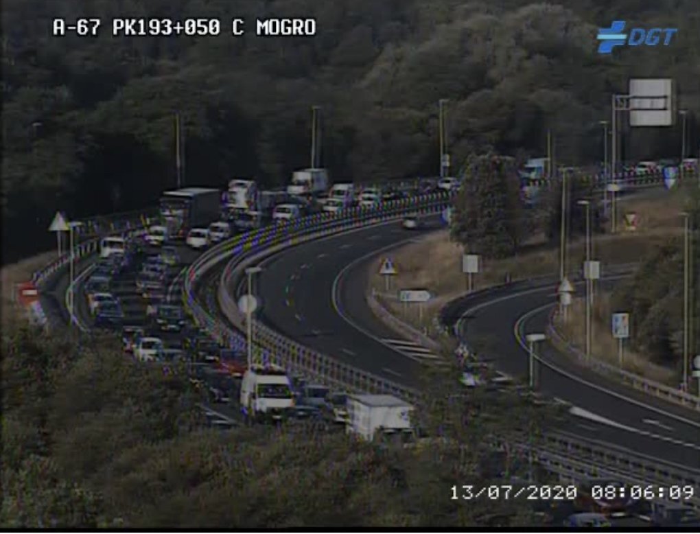 Retenciones en la A67 por una colisión múltiple sentido Santander