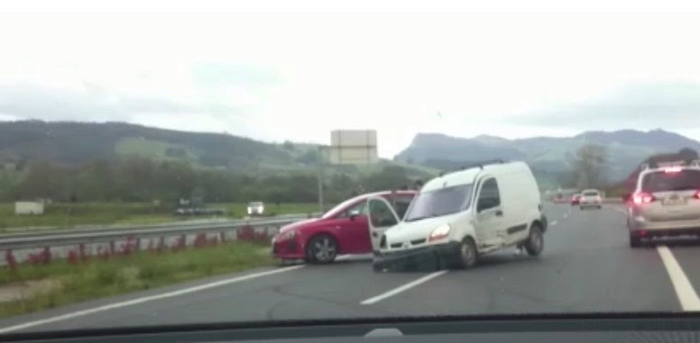 Según la primera información uno de los vehículos, el blanco, llevaba un remolque con un animal en su interior y el movimiento del remolque habría hecho perder el control al conductor para acabar impactando contra los otros dos vehículos.