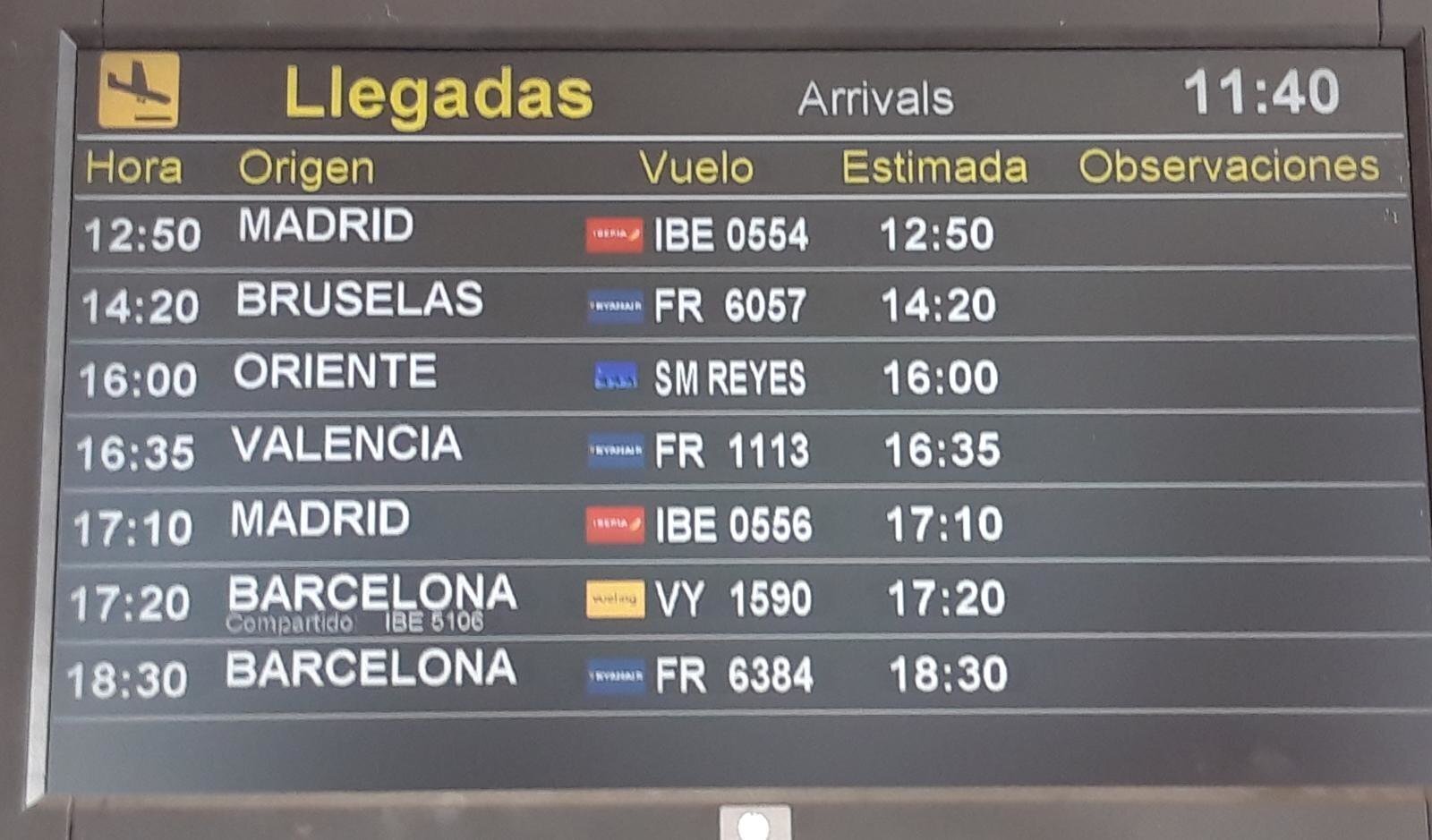 El vuelo de SSMM los Reyes Magos ya aparece en las pantallas del Aeropuerto