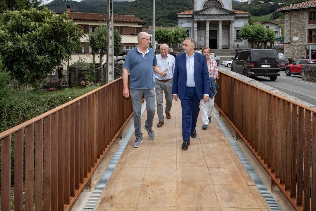 El consejero de Fomento, Roberto Media, acompañado del alcalde de Arredondo, Leoncio Carrascal, ha inaugurado este viernes la pasarela ubicada en el centro de la localidad, que ha sustituido a otra de madera deteriorada que el Ayuntamiento había cerrado ante el peligro que suponía para los usuarios.