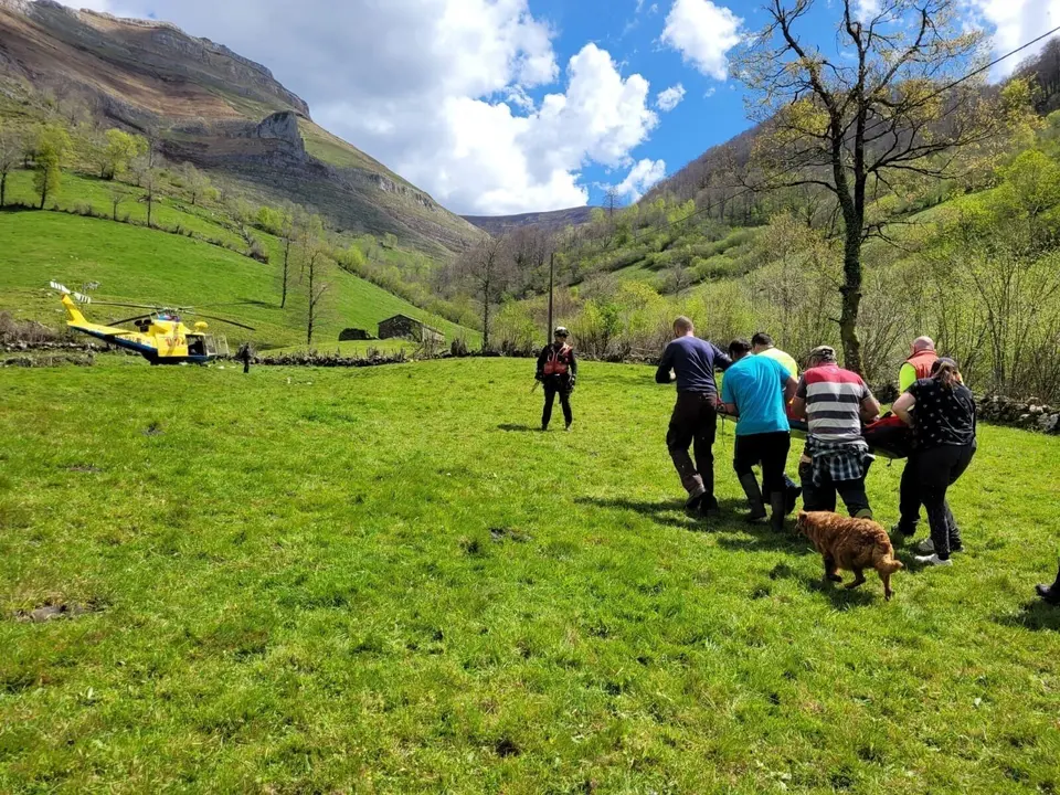 El equipo del helicóptero medicalizado del Gobierno de Cantabria ha evacuado este martes a un hombre en estado grave tras sufrir una caída de un caballo en una pista forestal de Calseca, localidad perteneciente al municipio de Ruesga.