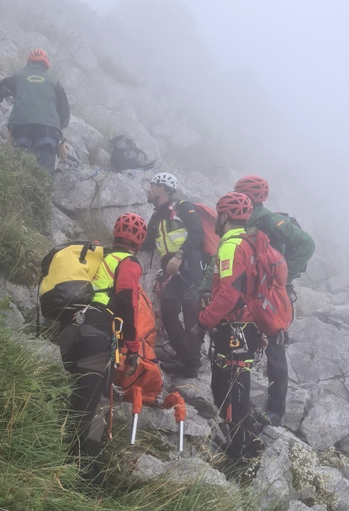 Un rescatador y un médico accedieron a las inmediaciones del accidente por medio del helicóptero medicalizado del Gobierno regional, que no pudo intervenir debido a la espesa niebla que se mantuvo durante la jornada en la cumbre de la montaña.