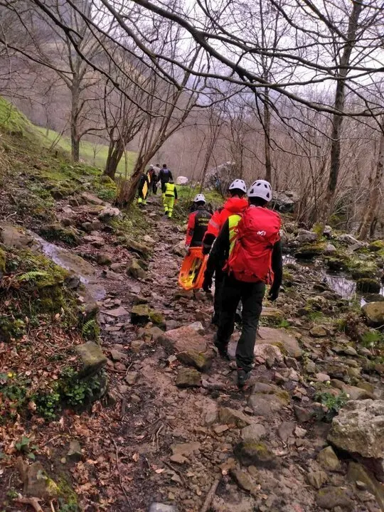 El equipo del helicóptero del Gobierno de Cantabria ha rescatado este jueves a un senderista con una fractura de peroné en Las Cascadas del Asón, en Arredondo.