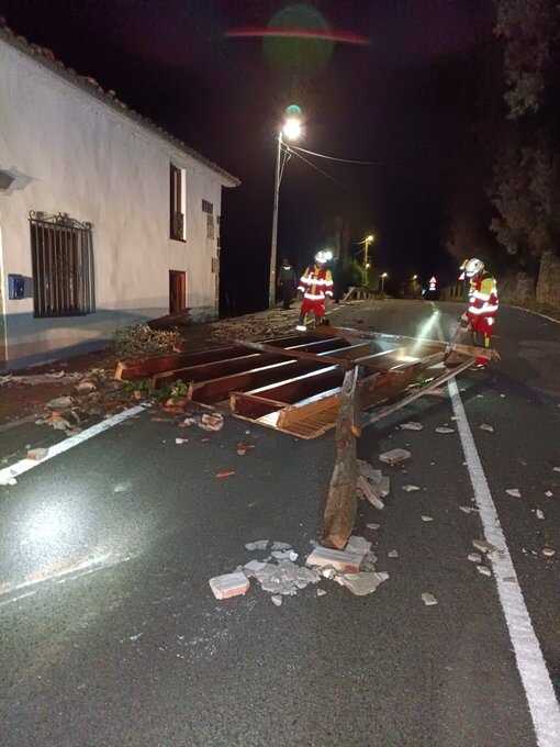 Según información del Centro de Atención a Emergencias 112, los bomberos del Gobierno de Cantabria han retirado los elementos de la casa que presentaba riesgo de caída y parte de la estructura de la cubierta que el viento había desplazado hasta la carretera.