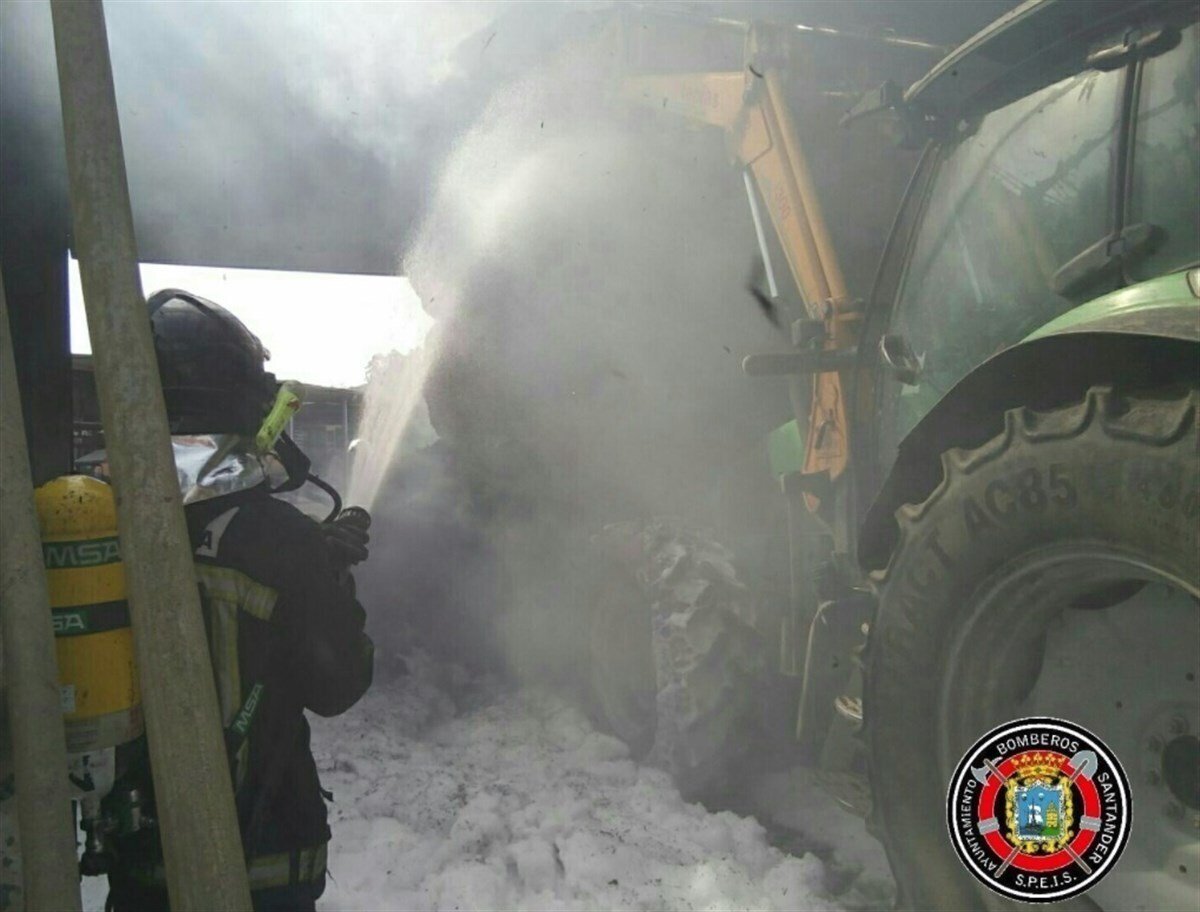Bomberos de Santander y Torrelavega sofocan un depósito de gasoil de una cuadra de Vioño