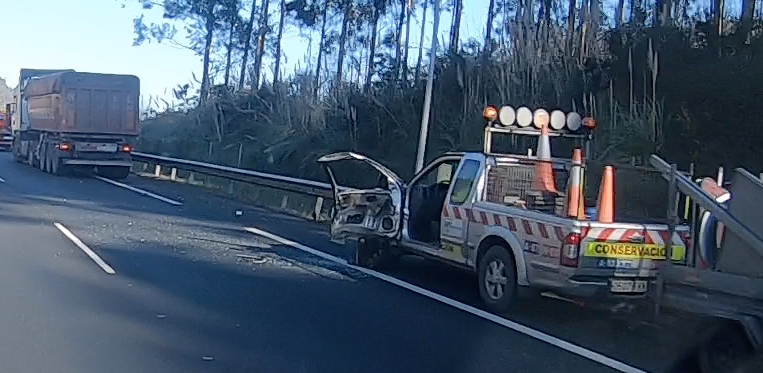 En la zona se están realizando labores de poda y el pick-up de carrreteras paró en el arcén, según la información facilitada, con las balizas de señalización encendidas.